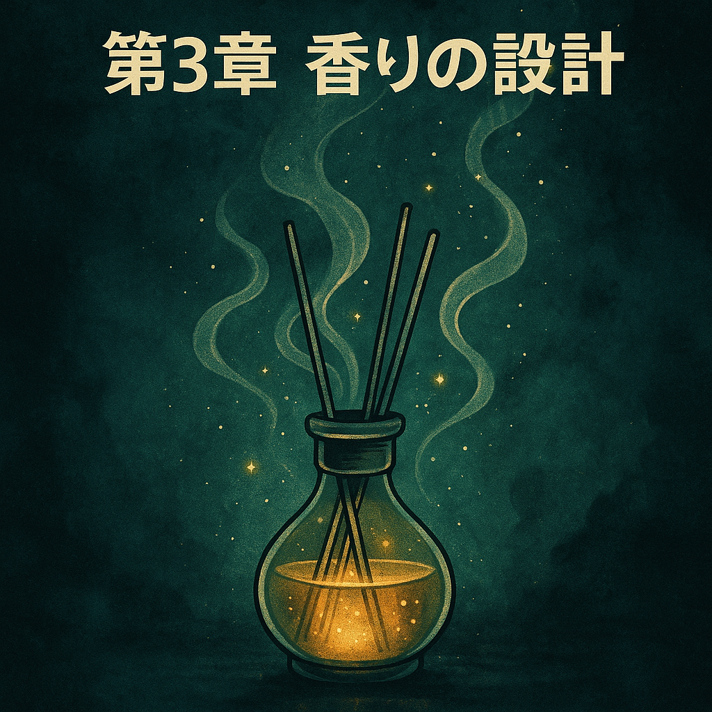 本章では、アロマブレンドの考え方から、香りの立ち上がり方、そして香りを使った演出のコツまでを学びます。
