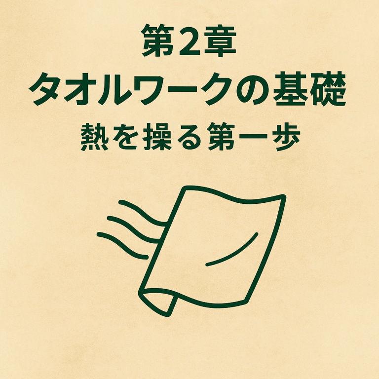 ■ はじめに アウフグースの根幹にあるのは「熱」です。しかし、単に高温を作ることが目的ではありません。“体感温度をデザインする”――それが熱波師の仕事です。 本章では、サウナ室内での熱の流れ方を理解し、タオルワークやロウ […]